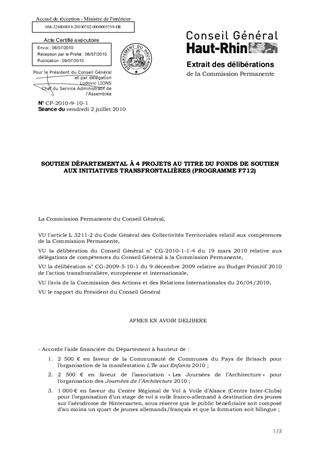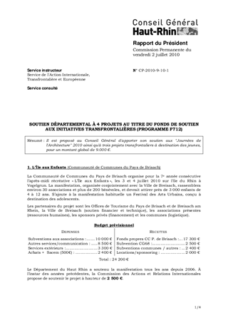 Il est proposé au Conseil Général d'apporter son soutien aux "Journées de l'Architecture" 2010 ainsi qu'à trois projets transfrontaliers à destination des jeunes, pour un montant global de 9.000 €.