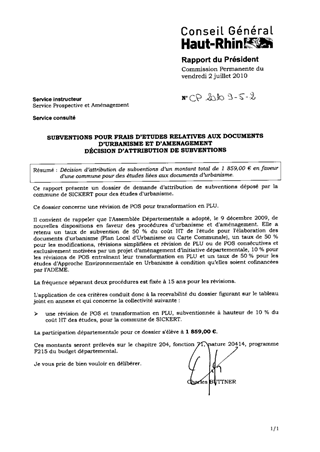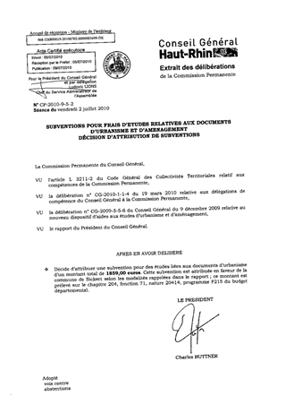 SUBVENTIONS POUR FRAIS D'ETUDES RELATIVES AUX DOCUMENTS D'URBANISME ET D'AMENAGEMENT DECISION D'ATTRIBUTION DE SUBVENTIONS Resumé Pièces jointes DELIBERATION RAPPORT Assemblée : Commission Permanente Date : 02/07/2010 Rapporteur : Non défini Collectivité : Conseil départemental du Haut-Rhin Direction : Non défini Service : Service Prospective et Aménagement Domaine : Aménagement du territoire Commission : Commission Permanente
