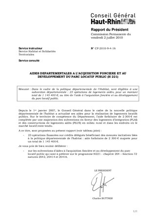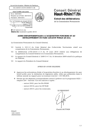 AIDES DEPARTEMENTALES A L'ACQUISITION FONCIERE ET AU DEVELOPPEMENT DU PARC LOCATIF PUBLIC (H 221)