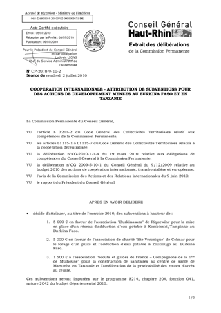 COOPERATION INTERNATIONALE - ATTRIBUTION DE SUBVENTIONS POUR DES ACTIONS DE DEVELOPPEMENT MENEES AU BURKINA FASO ET EN TANZANIE