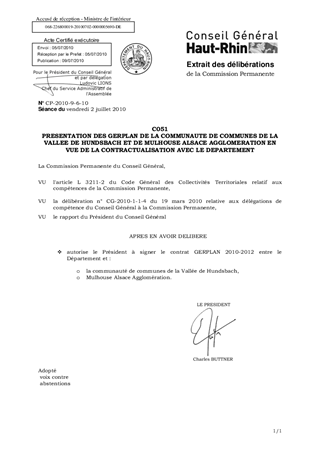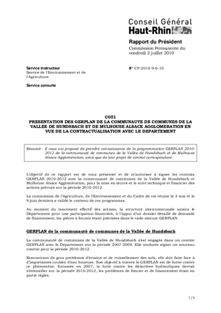Il vous est proposé de prendre connaissance de la programmation GERPLAN 2010-2012 de la communauté de communes de la Vallée de Hundsbach et de Mulhouse Alsace Agglomération, ainsi que de leur projet de contrat correspondant.