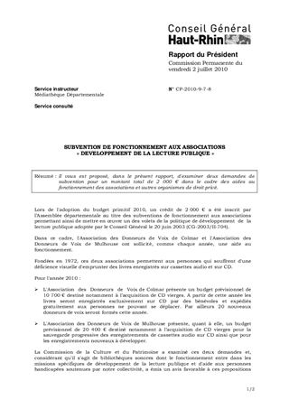 SUBVENTION DE FONCTIONNEMENT AUX ASSOCIATIONS « DEVELOPPEMENT DE LA LECTURE PUBLIQUE »