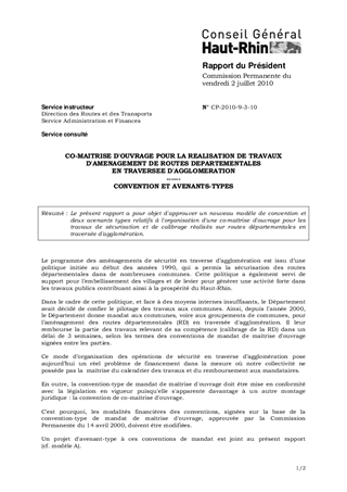 CO-MAITRISE D'OUVRAGE POUR LA REALISATION DE TRAVAUX D'AMENAGEMENT DE ROUTES DEPARTEMENTALES EN TRAVERSEE D'AGGLOMERATION ------ CONVENTION ET AVENANTS-TYPES