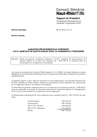 GARANTIE DÉPARTEMENTALE D'EMPRUNT O.P.H. HABITATS DE HAUTE-ALSACE POUR 15 LOGEMENTS À TURCKHEIM