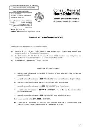 Soutien financier aux services et actions destinés aux personnes âgées du département du Haut-Rhin développés par APALIB' pour un montant total de 200 000 euros.