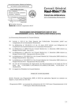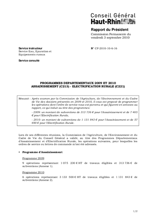 PROGRAMMES DEPARTEMENTAUX 2009 ET 2010 ASSAINISSEMENT (C213) - ELECTRIFICATION RURALE (C221)