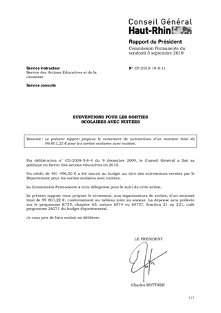 Le présent rapport propose le versement de subventions d’un montant total de 99.801,22 € pour les sorties scolaires avec nuitées.