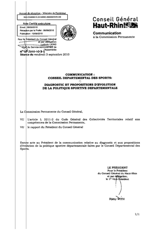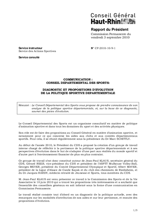 COMMUNICATION :CONSEIL DEPARTEMENTAL DES SPORTS:DIAGNOSTIC ET PROPOSITIONS D'EVOLUTION DE LA POLITIQUE SPORTIVE DEPARTEMENTALE