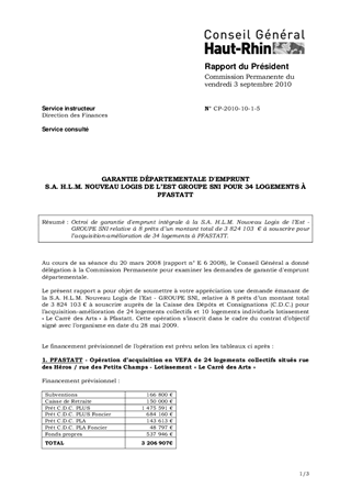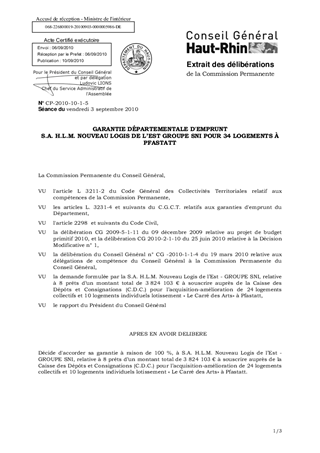 GARANTIE DÉPARTEMENTALE D'EMPRUNT S.A. H.L.M. NOUVEAU LOGIS DE L'EST GROUPE SNI POUR 34 LOGEMENTS À PFASTATT