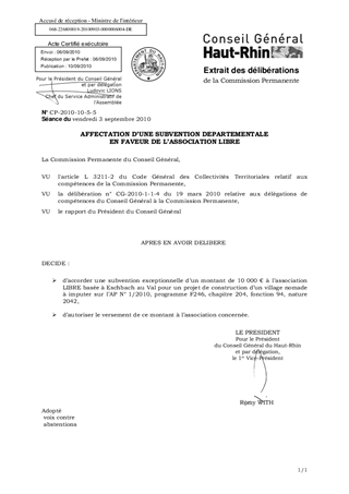 AFFECTATION D'UNE SUBVENTION DEPARTEMENTALE EN FAVEUR DE L'ASSOCIATION LIBRE