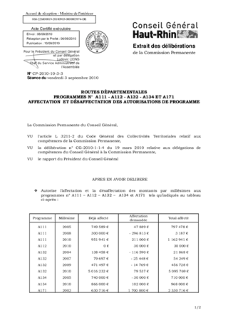 ROUTES DÉPARTEMENTALES PROGRAMMES N° A111 - A112 - A132 - A134 ET A171 AFFECTATION ET DÉSAFFECTATION DES AUTORISATIONS DE PROGRAMME