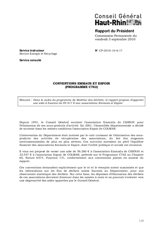 CONVENTIONS EMMAUS ET ESPOIR (PROGRAMME C762)