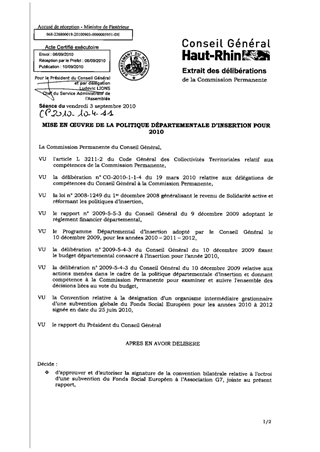 MISE EN OEUVRE DE LA POLITIQUE DÉPARTEMENTALE D'INSERTION POUR 2010
