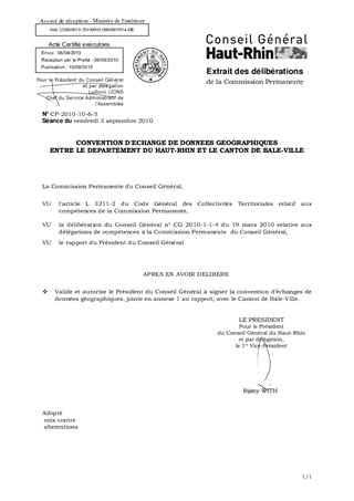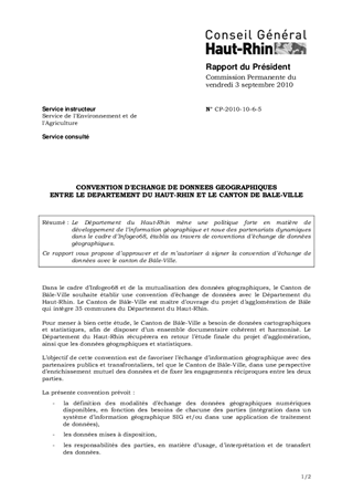 CONVENTION D'ECHANGE DE DONNEES GEOGRAPHIQUES ENTRE LE DEPARTEMENT DU HAUT-RHIN ET LE CANTON DE BALE-VILLE