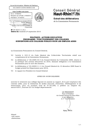 POLITIQUE : ACTIONS EDUCATIVES PROGRAMME : FONCTIONNEMENT DES COLLEGES SUBVENTIONS AUX COLLEGES PUBLICS POUR LES EMPLOIS AIDES