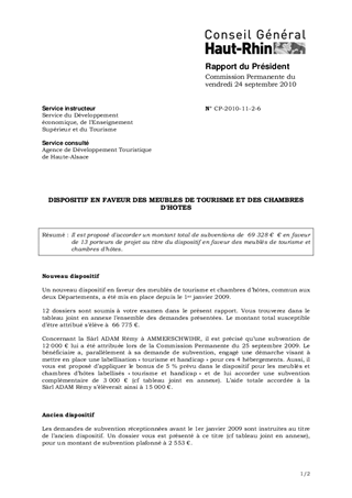 DISPOSITIF EN FAVEUR DES MEUBLES DE TOURISME ET DES CHAMBRES D'HOTES