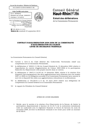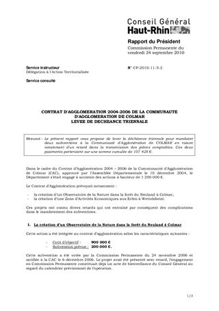 CONTRAT D'AGGLOMERATION 2004-2006 DE LA COMMUNAUTE D'AGGLOMERATION DE COLMAR LEVEE DE DECHEANCE TRIENNALE