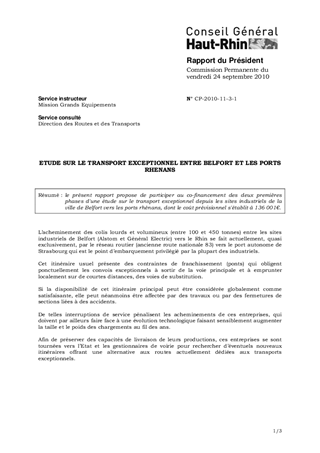 ETUDE SUR LE TRANSPORT EXCEPTIONNEL ENTRE BELFORT ET LES PORTS RHENANS