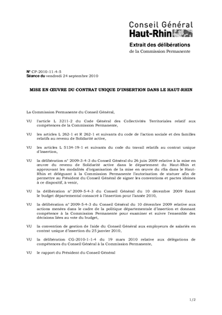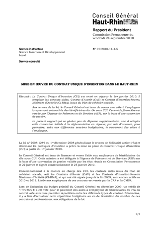 MISE EN OEUVRE DU CONTRAT UNIQUE D'INSERTION DANS LE HAUT-RHIN