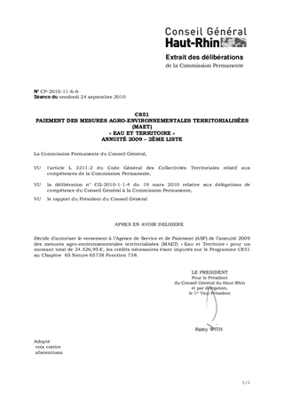 C851 PAIEMENT DES MESURES AGRO-ENVIRONNEMENTALES TERRITORIALISÉES (MAET) « EAU ET TERRITOIRE » ANNUITÉ 2009 - 2ÈME LISTE