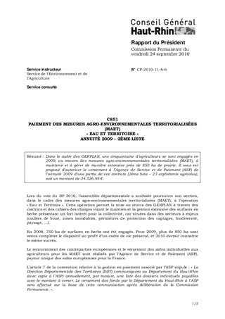 Dans le cadre des GERPLAN, une cinquantaine d’agriculteurs se sont engagés en 2009, au travers des mesures agro-environnementales territorialisées (MAET), à maintenir et à gérer de manière extensive près de 850 ha de prairie. Il vous est proposé d'autoriser le versement à l’Agence de Service et de Paiement (ASP) de l’annuité 2009 d’une partie de ces contrats (2ème liste – 23 exploitants agricoles), soit un montant de 34.526,95 €.