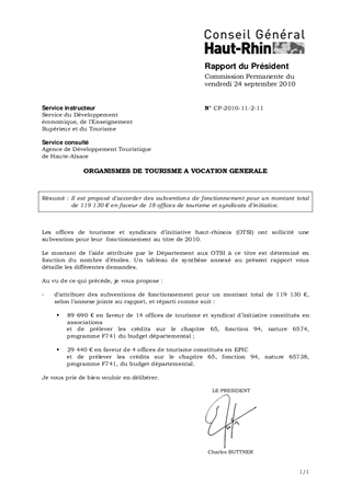 ORGANISMES DE TOURISME A VOCATION GENERALE