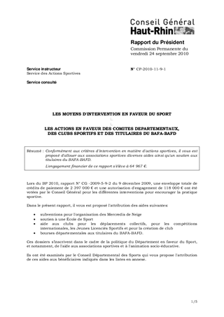 LES MOYENS D'INTERVENTION EN FAVEUR DU SPORT LES ACTIONS EN FAVEUR DES COMITES DEPARTEMENTAUX, DES CLUBS SPORTIFS ET DES TITULAIRES DU BAFA-BAFD