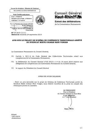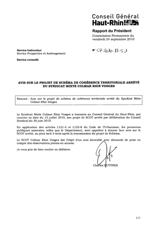 AVIS SUR LE PROJET DE SCHEMA DE COHERENCE TERRITORIALE ARRETE DU SYNDICAT MIXTE COLMAR RHIN VOSGES Resumé Pièces jointes DELIBERATION RAPPORT Assemblée : Commission Permanente Date : 24/09/2010 Rapporteur : Non défini Collectivité : Conseil départemental du Haut-Rhin Direction : Non défini Service : Service Prospective et Aménagement Domaine : Administration Commission : Commission Permanente