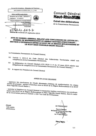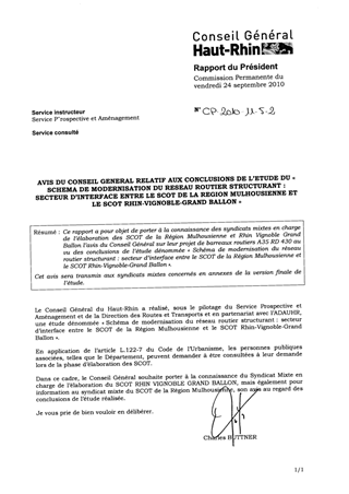 AVIS DU CONSEIL GENERAL RELATIF AUX CONCLUSIONS DE L'ETUDE DU SCHEMA DE MODERNISATION DU RESEAU ROUTIER STRUCTURANT SECTEUR D'INTERFACE ENTRE LE SCOT DE LA REGION MULHOUSIENNE ET LE SCOT RHIN VIGNOBLE GRAND BALLON Resumé Pièces jointes DELIBERATION RAPPORT Assemblée : Commission Permanente Date : 24/09/2010 Rapporteur : Non défini Collectivité : Conseil départemental du Haut-Rhin Direction : Non défini Service : Service Prospective et Aménagement Domaine : Administration Commission : Commission Permanente