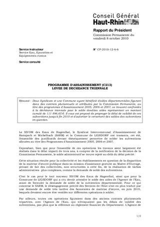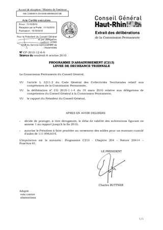 PROGRAMME D'ASSAINISSEMENT (C213) LEVEE DE DECHEANCE TRIENNALE