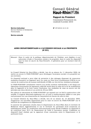AIDES DEPARTEMENTALES A L’ACCESSION SOCIALE A LA PROPRIETE (H 221)