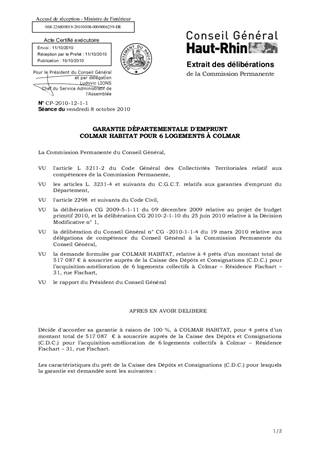 GARANTIE DÉPARTEMENTALE D'EMPRUNT COLMAR HABITAT POUR 6 LOGEMENTS À COLMAR