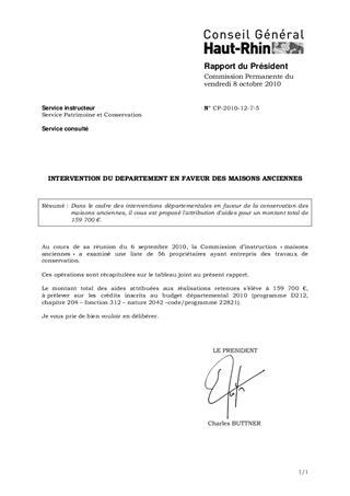 INTERVENTION DU DEPARTEMENT EN FAVEUR DES MAISONS ANCIENNES