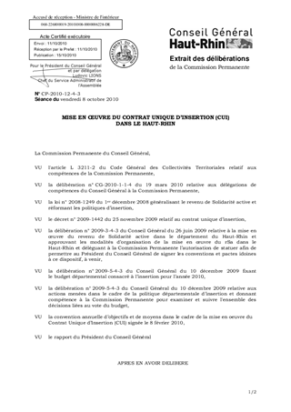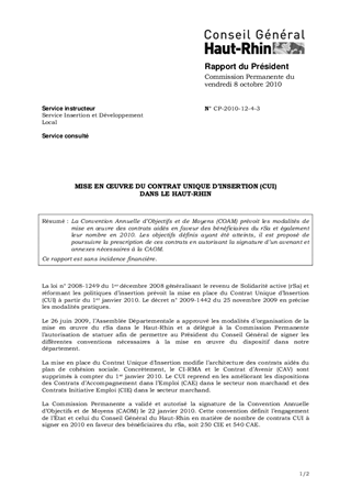 MISE EN ŒUVRE DU CONTRAT UNIQUE D’INSERTION (CUI) DANS LE HAUT-RHIN