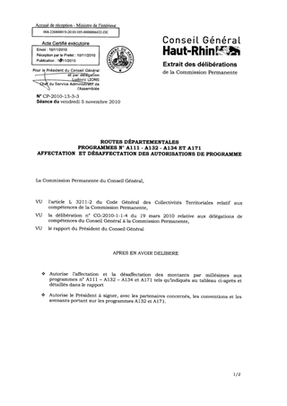 ROUTES DÉPARTEMENTALESPROGRAMMES N° A111 - A132 - A134 ET A171 AFFECTATION ET DÉSAFFECTATION DES AUTORISATIONS DE PROGRAMME