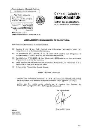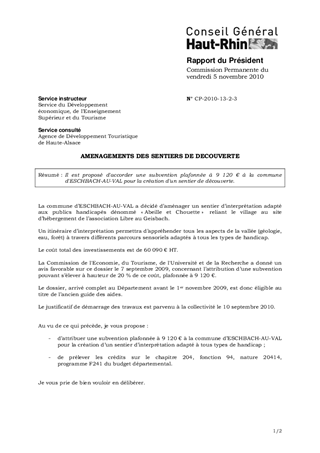 Il est proposé d'accorder une subvention plafonnée à 9 120 € à la commune d'ESCHBACH-AU-VAL pour la création d'un sentier de découverte.