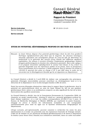 ETUDE DU POTENTIEL GÉOTHERMIQUE PROFOND DU SECTEUR SUD ALSACE