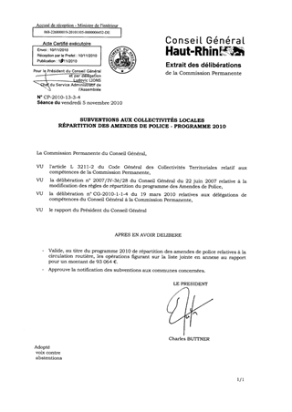 SUBVENTIONS AUX COLLECTIVITÉS LOCALESRÉPARTITION DES AMENDES DE POLICE - PROGRAMME 2010
