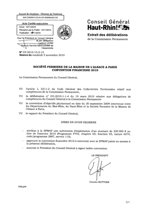 SOCIÉTÉ FERMIERE DE LA MAISON DE L'ALSACE A PARISCONVENTION FINANCIERE 2010