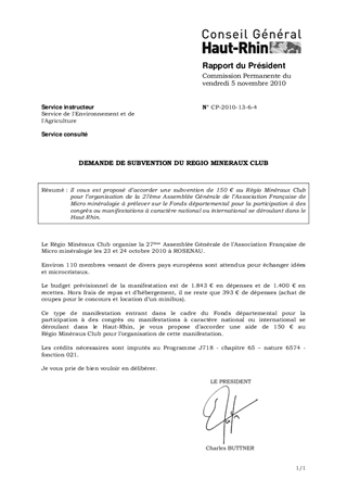 DEMANDE DE SUBVENTION DU REGIO MINERAUX CLUB
