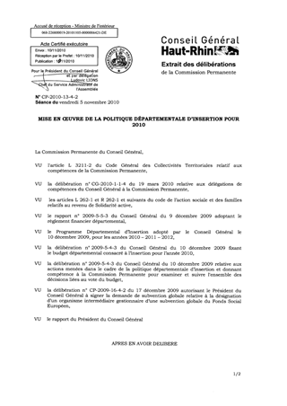 MISE EN ŒUVRE DE LA POLITIQUE DÉPARTEMENTALE D’INSERTION POUR 2010