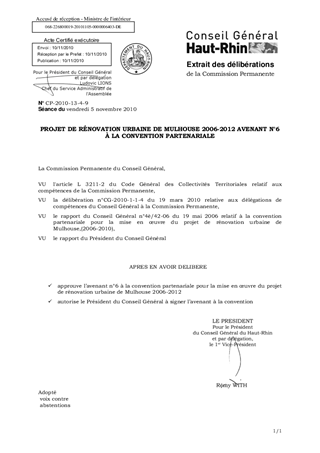 PROJET DE RÉNOVATION URBAINE DE MULHOUSE 2006-2012 AVENANT N°6 À LA CONVENTION PARTENARIALE