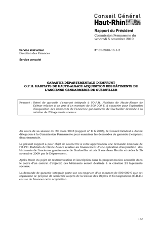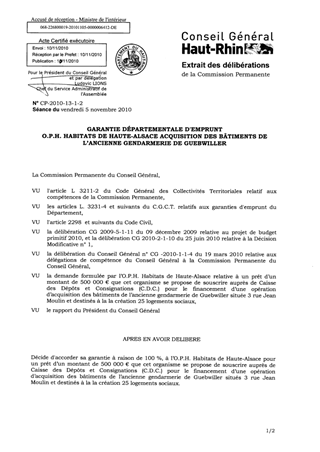 GARANTIE DÉPARTEMENTALE D'EMPRUNTO.P.H. HABITATS DE HAUTE-ALSACE ACQUISITION DES BÂTIMENTS DE L’ANCIENNE GENDARMERIE DE GUEBWILLER