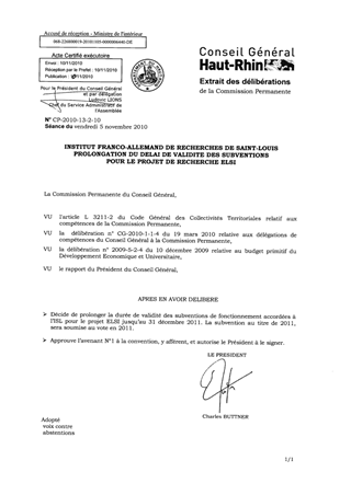 INSTITUT FRANCO-ALLEMAND DE RECHERCHES DE SAINT-LOUISPROLONGATION DU DELAI DE VALIDITE DES SUBVENTIONSPOUR LE PROJET DE RECHERCHE ELSI