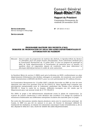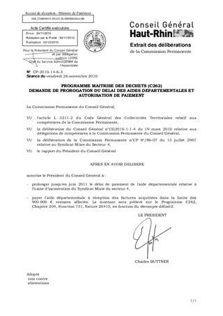 PROGRAMME MAITRISE DES DECHETS (C262) DEMANDE DE PROROGATION DU DELAI DES AIDES DEPARTEMENTALES ET AUTORISATION DE PAIEMENT
