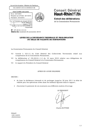 LEVEE DE LA DECHEANCE TRIENNALE ET PROLONGATION DU DELAI DE VALIDITE DE SUBVENTIONS