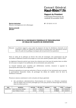 Le présent rapport a pour objet de proposer de lever la déchéance triennale et de prolonger le délai de validité de subventions accordées pour des opérations entrant dans le cadre de la politique montagne afin de permettre leur paiement.