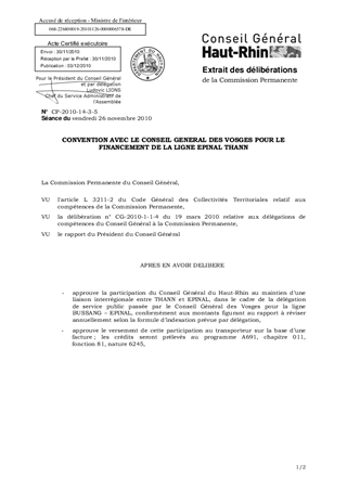 CONVENTION AVEC LE CONSEIL GENERAL DES VOSGES POUR LE FINANCEMENT DE LA LIGNE EPINAL THANN