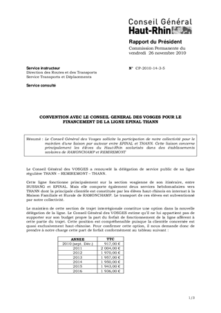 Le Conseil Général des Vosges sollicite la participation de notre collectivité pour le maintien d'une liaison par autocar entre EPINAL et THANN. Cette liaison concerne principalement les élèves du Haut-Rhin scolarisés dans des établissements scolaires de RAMONCHAMP et REMIREMONT