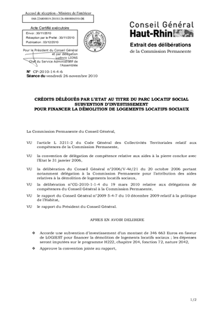 CRÉDITS DÉLÉGUÉS PAR L’ETAT AU TITRE DU PARC LOCATIF SOCIAL SUBVENTION D’INVESTISSEMENT POUR FINANCER LA DÉMOLITION DE LOGEMENTS LOCATIFS SOCIAUX